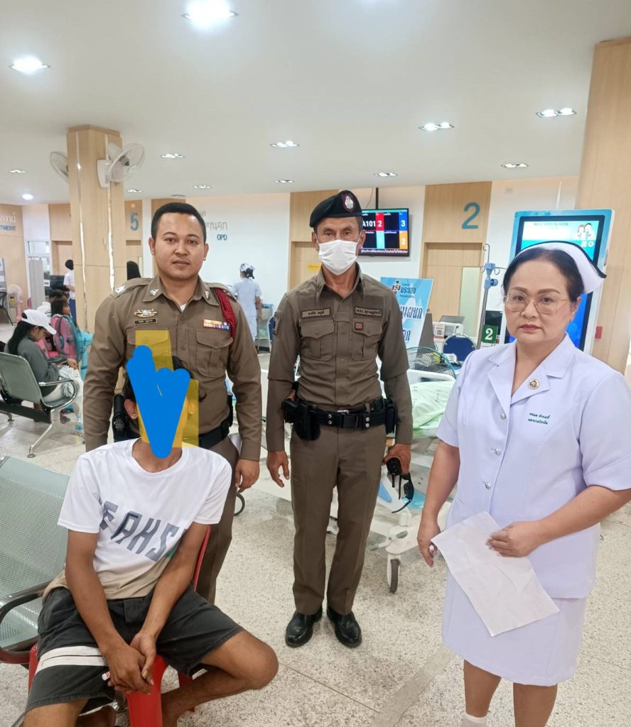 พบ น.ส.อมรรัตน์ จันทร์แก้ว (มารดา) ทราบว่าบุตรชายเป็นผู้พิการทางการสื่อสาร(เป็นใบ้) ทะเลาะกับบิดา อีกทั้งบุตรชายมีประวัติการใช้สารเสพติด เจ้าหน้าที่ตำรวจ จึงได้พูดคุย เจรจาให้เข้าบำบัดสารเสพติด เจ้าตัวให้ความร่วมมือ เจ้าหน้าที่ตำรวจจึงได้นำตัวผู้ก่อเหตุส่ง รพ.พระแสง เพื่อทำการบำบัดรักษาต่อไป
