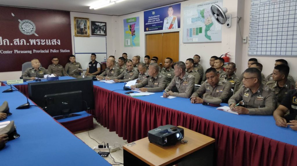 พ.ต.อ.วีระพันธ์ เกื้อรักษ์ ผกก.สภ.พระแสง ประชุมชี้แจงข้าราชการตำรวจ สภ.พระแสง ไม่รับสินบน และของกำนัลทุกชนิด ในการประชุมประจำเดือน