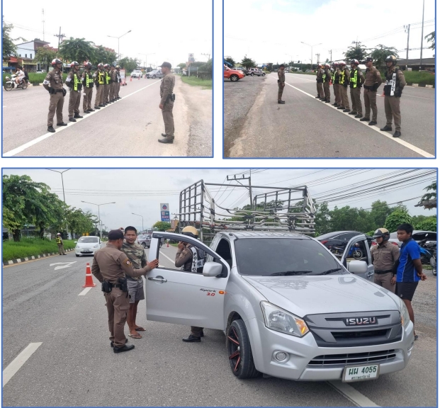 เจ้าหน้าที่ตํารวจ สายตรวจรถยนต์ รถจักรยานยนต์ สายตรวจจราจร สนธิกําลัง อส.อําเภอพระแสง ร่วมตั้งจุดตรวจ