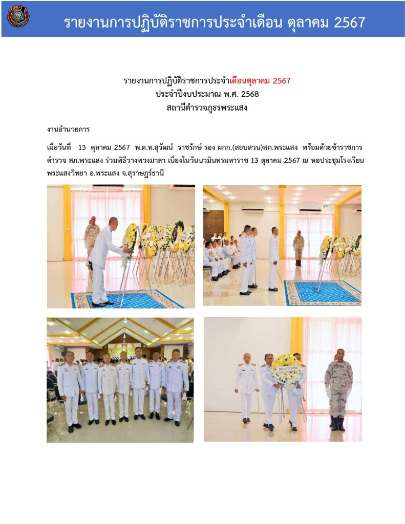 รายงานการปฏิบัติราชการ งานอำนวยการ ประจําเดือนตุลาคม 2567 ประจําปีงบประมาณ พ.ศ. 2568